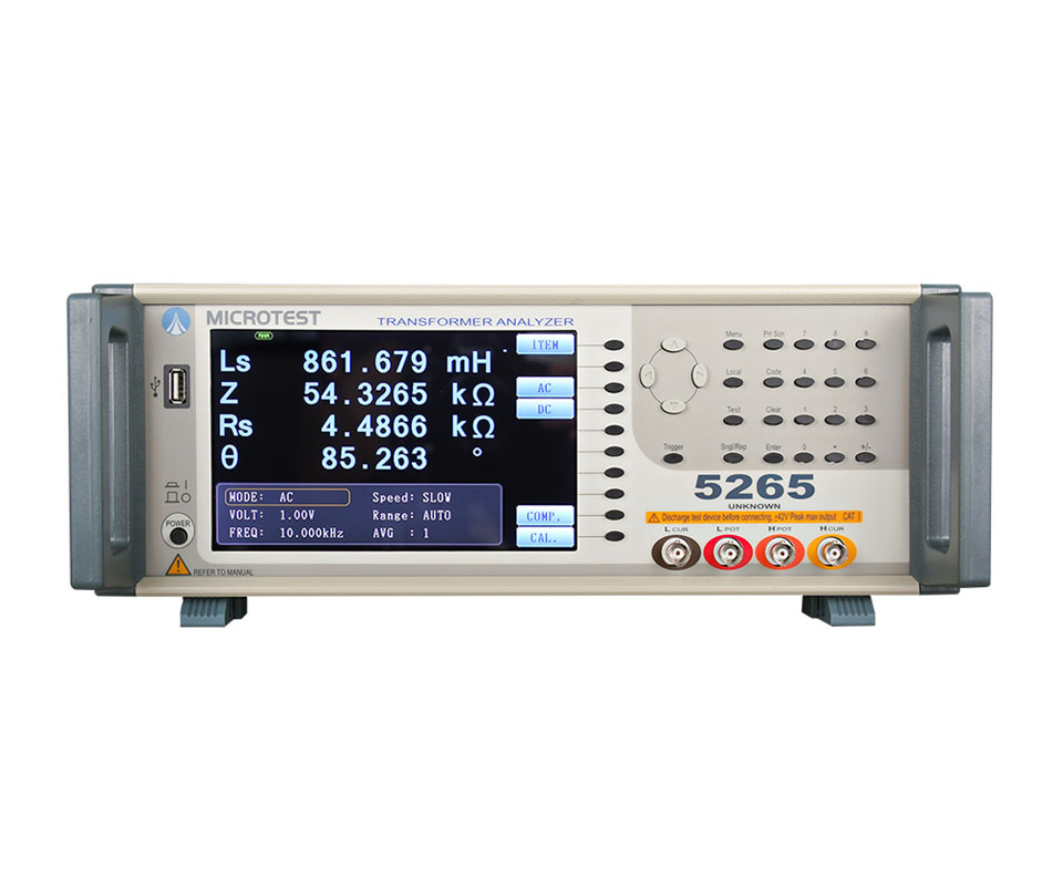益和 5265 變壓器, 測試頻率為 10Hz-200kHz,測試點位為20點?;揪珳?zhǔn)度 ±0.1%,搭配F5620測試治具(含100mA直流偏置電流)。內(nèi)建可儲存128組測試檔案。支援RS-232、Handler、LAN、USB Host等介面。適用于各種變壓器進(jìn)料、檢驗、品保等檢測部門。