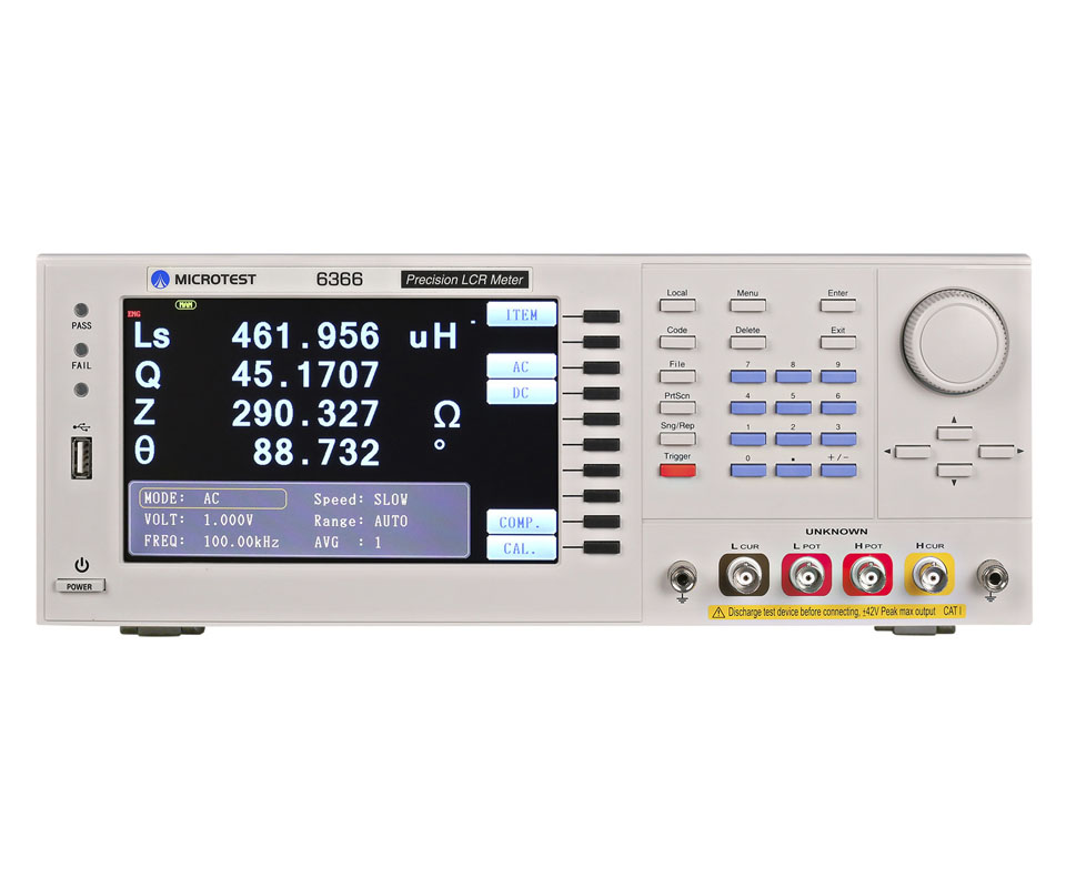 6366經(jīng)濟(jì)型 LCR 電橋具備高精確度、速度,且經(jīng)濟(jì)型多功能,測試頻率范圍從10Hz~500kHz?;揪_度±0.05%,螢?zāi)划嬅婵梢酝瑫r(shí)顯示四個(gè)參數(shù)。具多步列表功能,最多可以設(shè)定8組。低頻率6365A(0.1Hz~200kHz)可量測容量大的鋁電解電容。支援USB Host、RS-232、GPIB、Handler、LAN等介面。可選購電腦連線軟體進(jìn)行圖形繪圖分析。適用于生產(chǎn)制造、品?;蜻M(jìn)料檢驗(yàn)或自動化檢測部門。